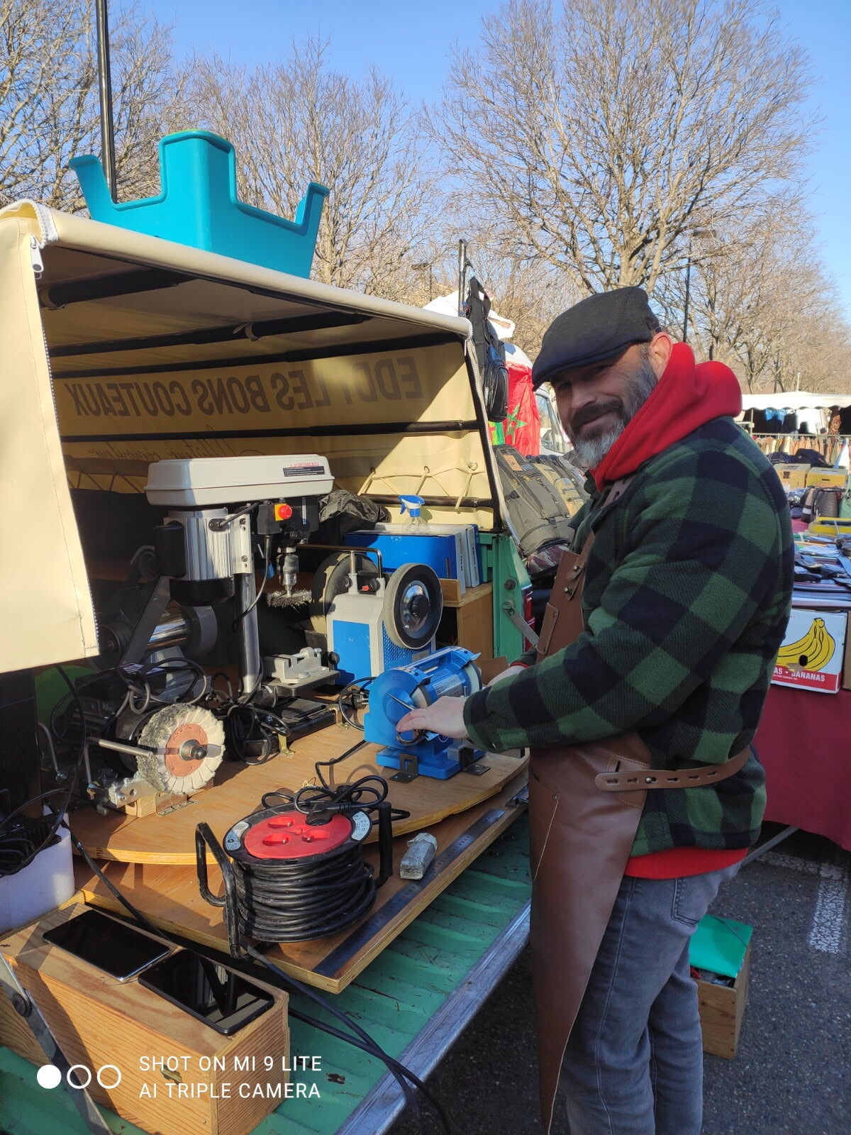 Affûtage, rémoulage et vente de couteaux sur les marchés